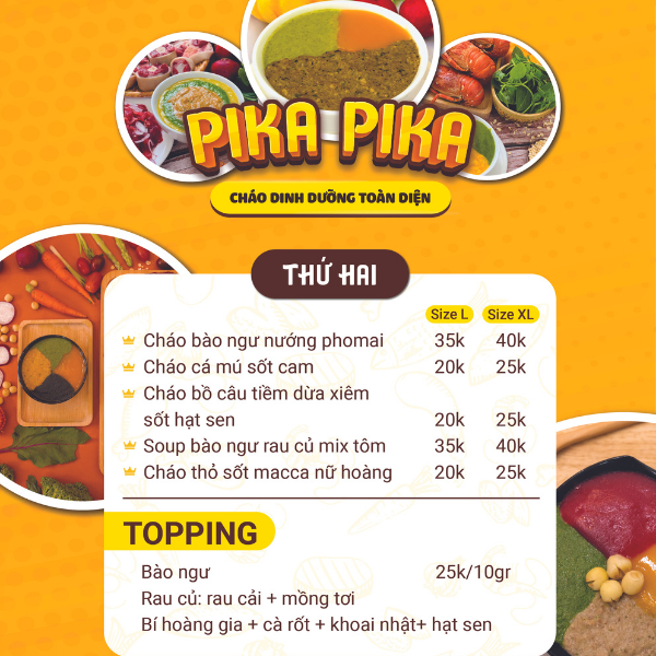 Thực đơn Pika thứ 2 có:
